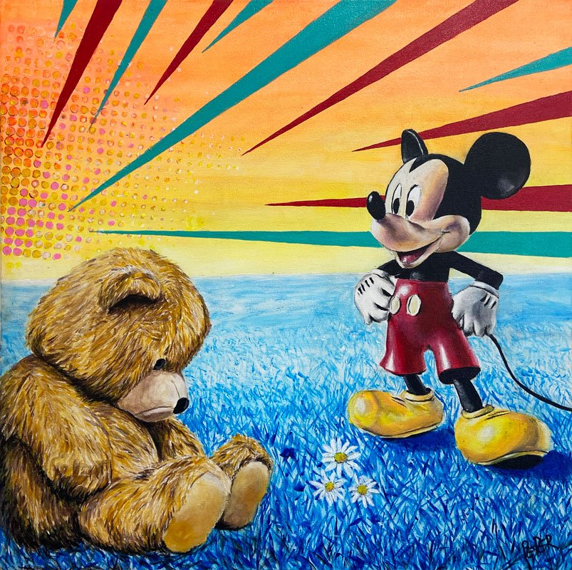 Mickey Mouse saw him and hurried on over,