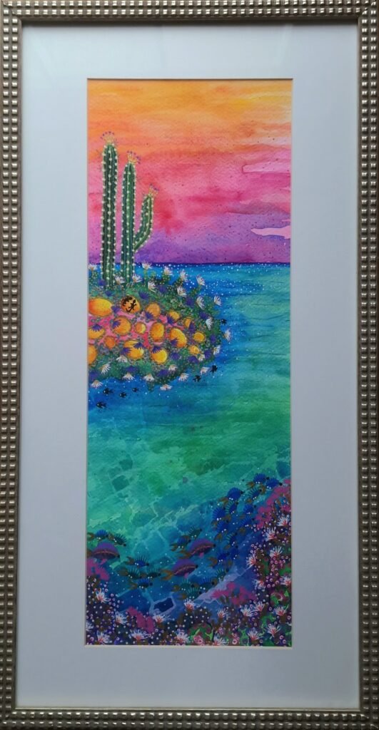 Watercolor with gel and gold, painted with oceanwater