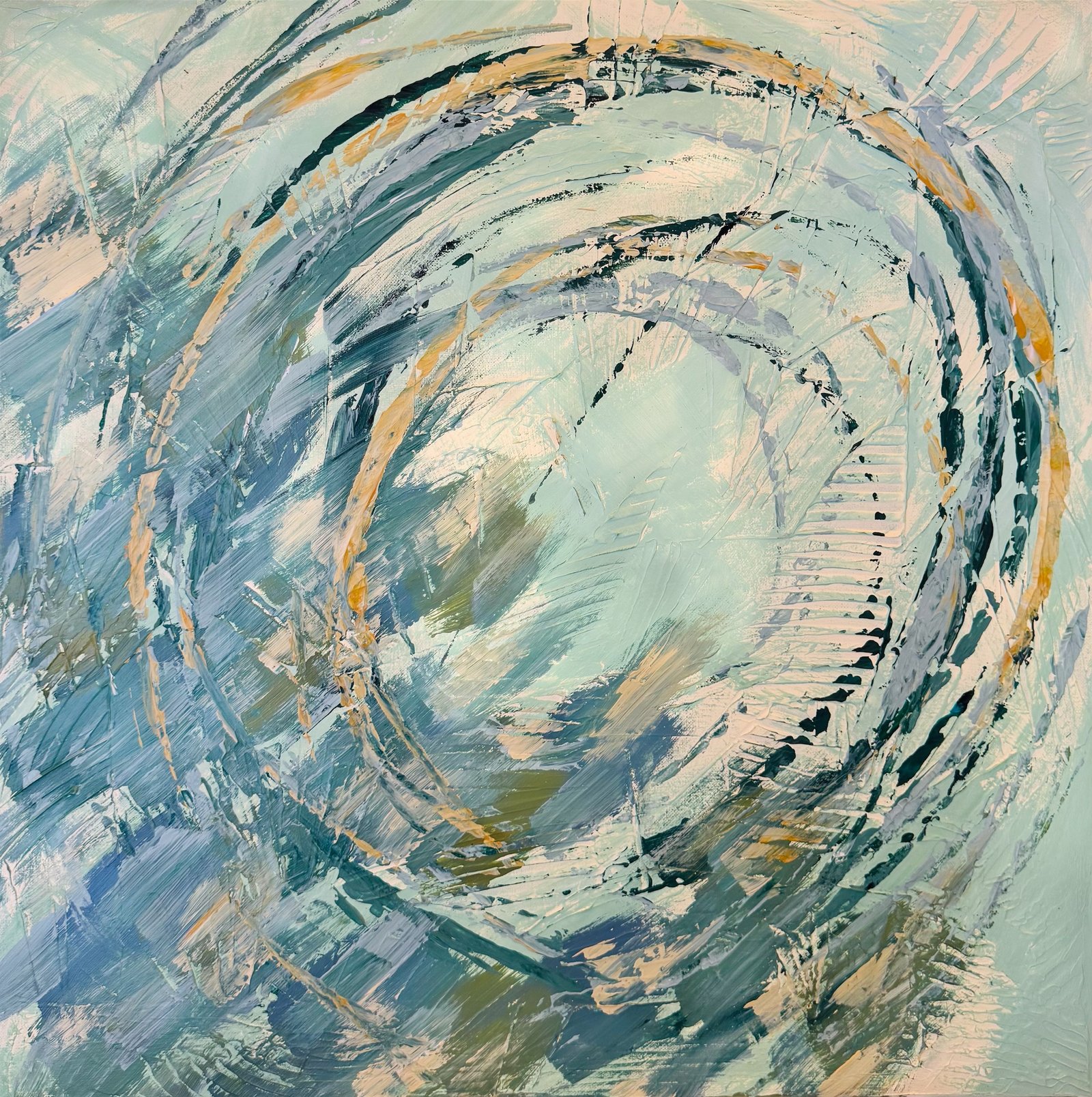 Passion in The Turquoise Sea, Acrylic and Mixed Media on Canvas, 50cmx50cm, 2026 by Jean Cherouny