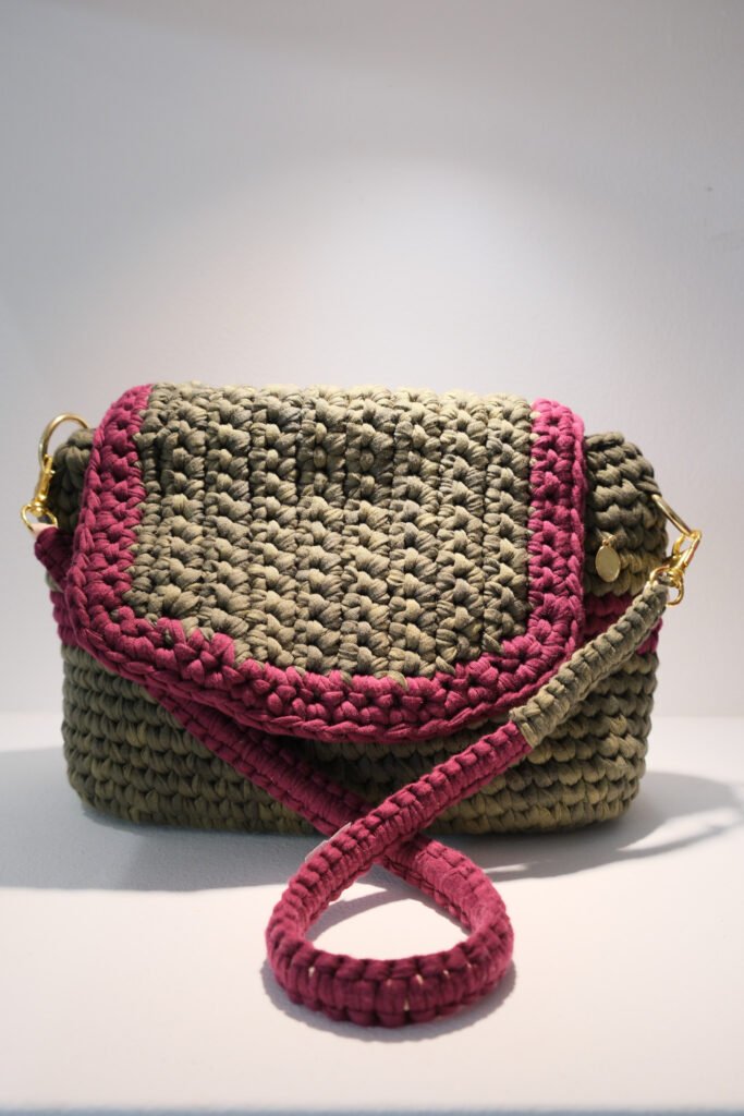 Combat Green & Maroon Crocheted Handbag