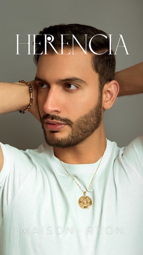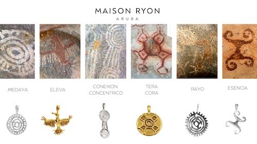 Ryon Dijkhoff, PENDANT INSPIRED BY ARUBA’S AMERINDIAN PICTOGRAPHS including stainless steel necklace, SILVER METAL WITH 24K GOLD PLATING, 3 X 3 CM, 2025