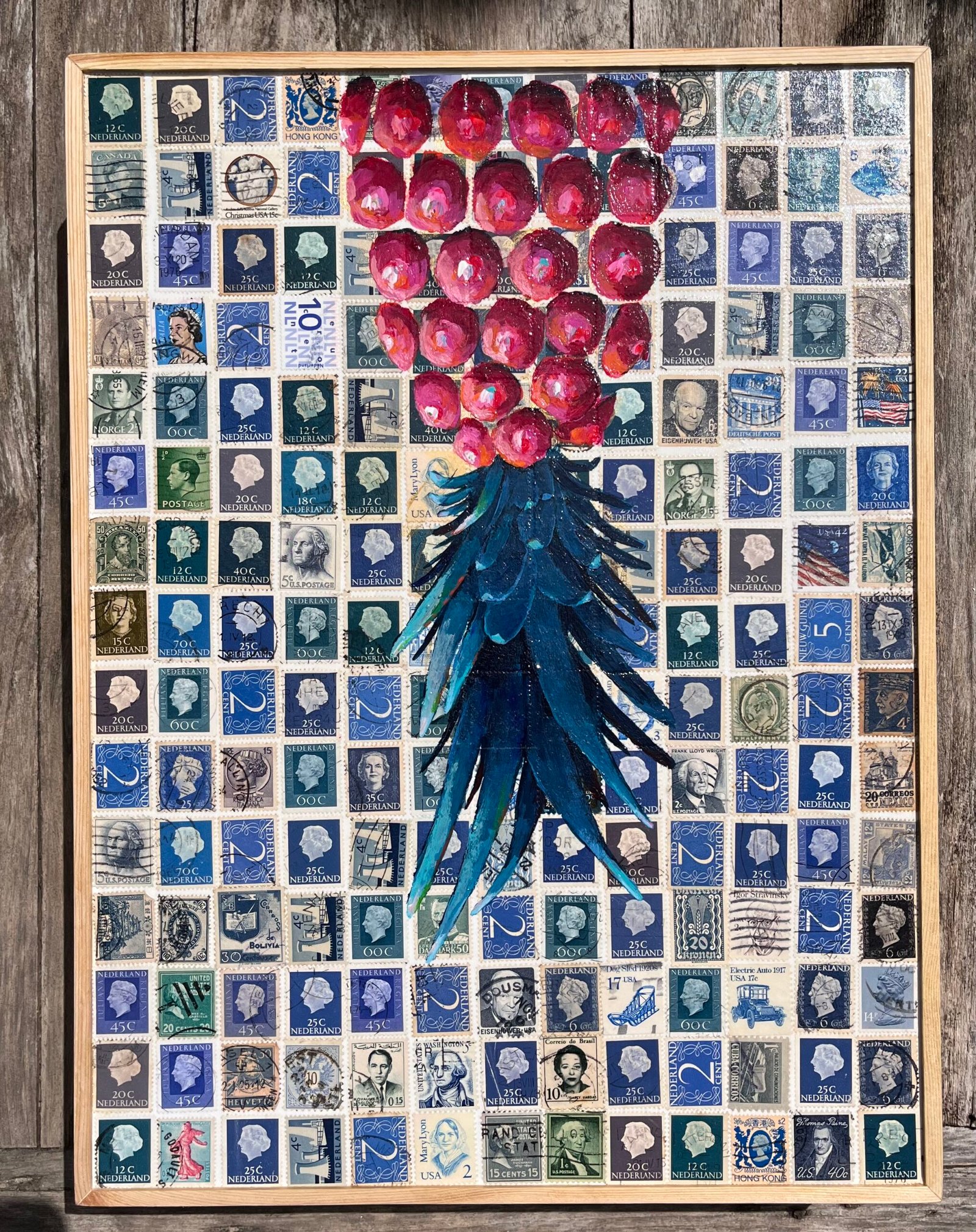 / Upside Down Pineapple On Blue Stamps